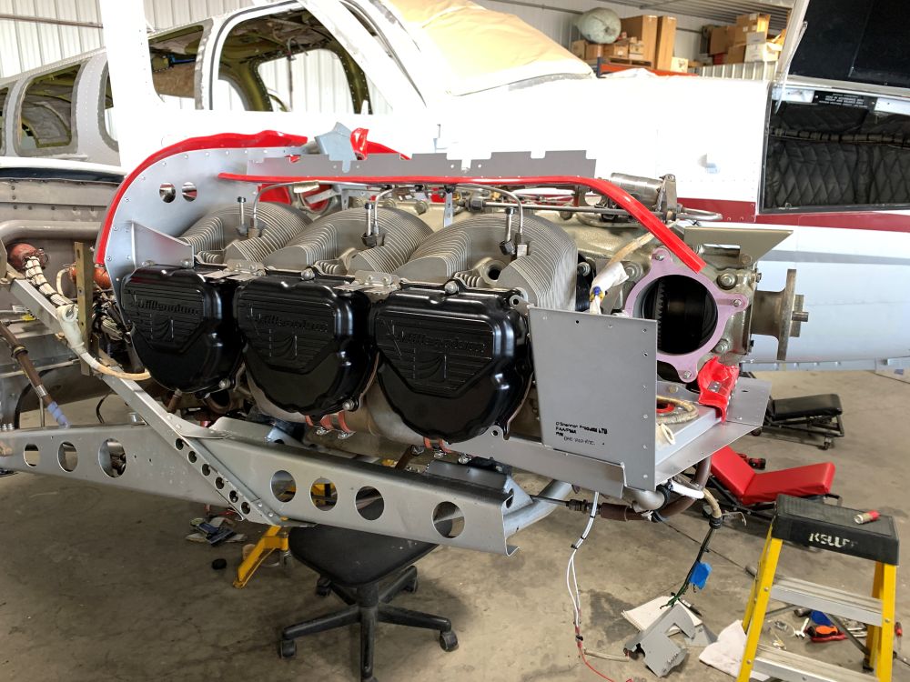With 15 years and 250 hours SMOH, decision was made to replace jugs with Superior Millennium cylinders. Fuel system and magnetos overhauled, wastegates inspected, and D'Shannon baffle kits installed. Props were out of acceptable specifications and scrapped, replaced with new.