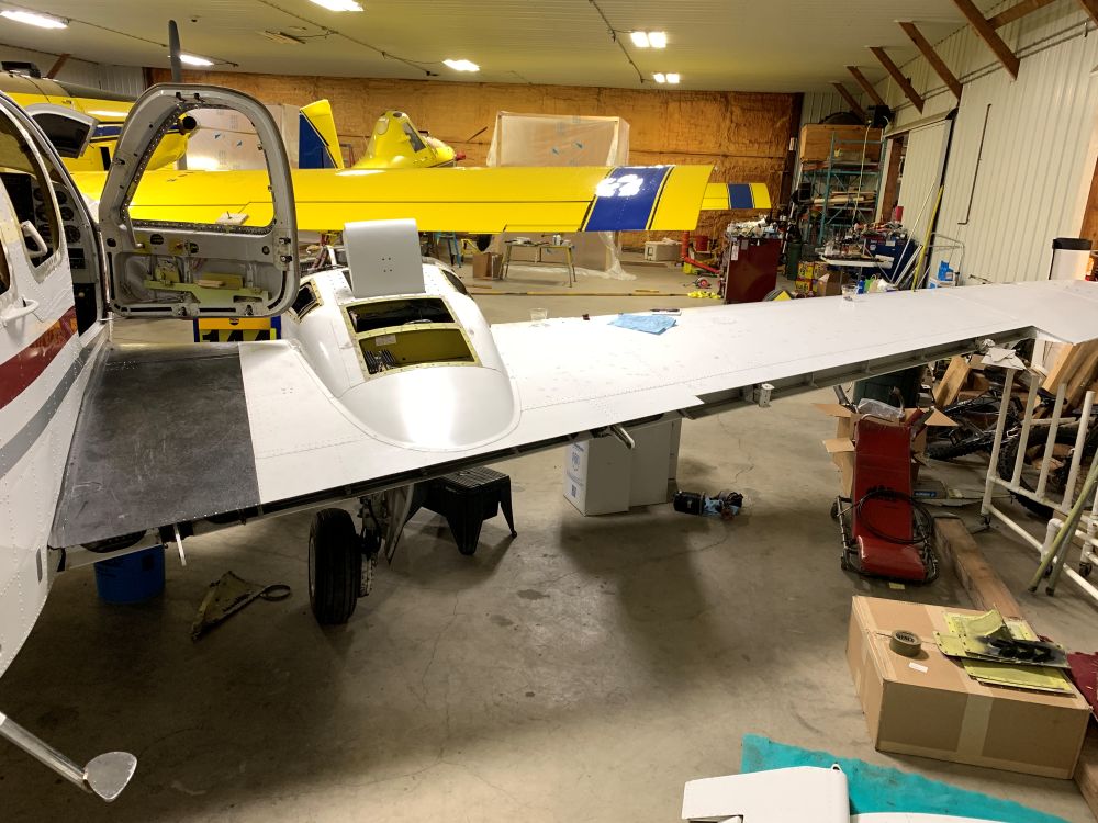 Windows, Ci&ES digital fuel senders, relief tube and speed brakes are installed. Flaps and ailerons are re-skinned, and elevators converted to aluminum.